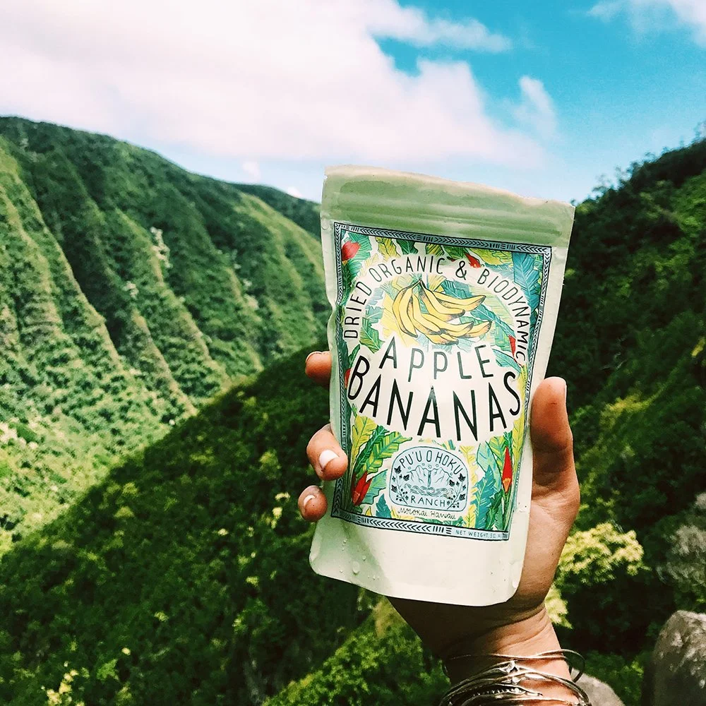 The farm at Pu‘u O Hōkū produces certified Biodynamic and organic dried bananas, fresh frozen Hawaiian ‘awa root, ‘Awa tincture, honey, and a wide variety of other fresh fruits and vegetables. You can find our farm products on the shelves at specialty stores in the islands or at our ranch store. If your looking for wholesale orders or want to order direct, call us or place an order through our online store. See below for more details on each of our offerings.