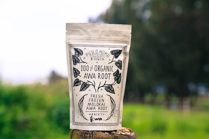 Pronounced “ah-va,” ‘awa is the Hawaiian name for the Polynesian medicinal plant many know as kava kava. Traditionally prepared as a tea and used ceremonially for conflict resolution among Polynesian royalty, ‘awa is now widely consumed as a nutraceutical that eases pain and stress. Pu‘u O Hōkū Ranch offers ‘awa in the form of fresh frozen root pulp, a preparation that produces a drink more potent and smoother than powdered ‘awa. We specialize in Hawaiian varietals, which have been found to have particularly high levels of the active compound kavalactone, and our product has been praised by connoisseurs throughout the islands as the most premium ‘awa available. Order it online, stop by our ranch store, or try it from one of our many wholesale vendors across Hawaii and the mainland.