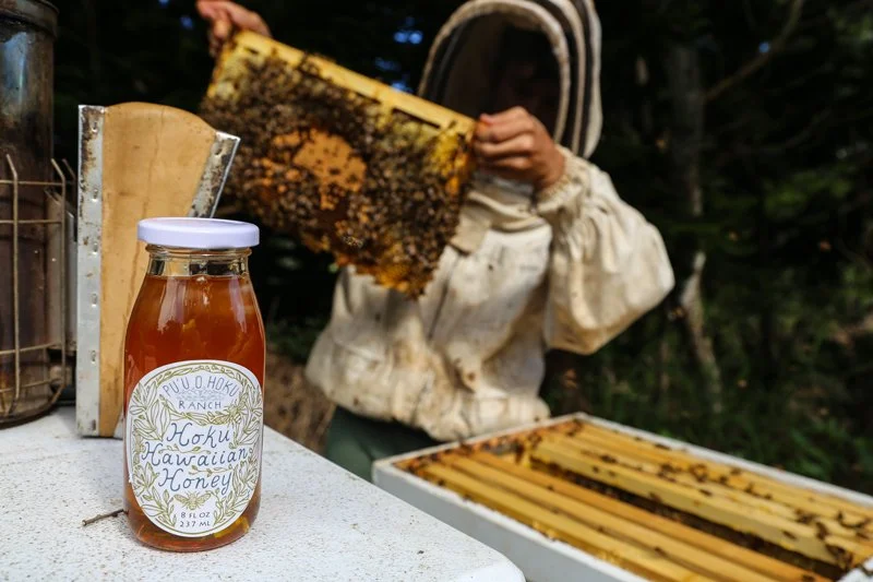 Our bees roam 14,000 acres of pristine land and native forests, feasting on wild flora and our organic, Biodynamic crops, free of the blights that have imperiled their species in many parts of the world. In tests, our honey shows absolutely no pesticide residues, making it some of the only truly uncontaminated honey in the world. We’re also dedicated to protecting our bee population. Because of the risk of disease, bees cannot be imported to Hawaii, but our isolation means that thousands of now wild, genetically diverse hives remain on the island, providing a unique and resilient stock of bees for our hives. Our honey is available in 4.5 oz. and 12 oz jars and can be purchased online, and in our ranch store.
